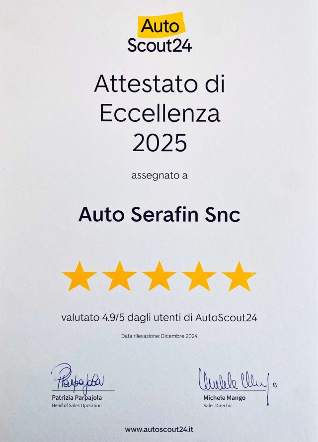 SI PREGA LA GENTILE CLIENTELA DI CHIAMARE, PER SENTIRE SE LA VETTURA E' ANCORA DISPONIBILE E SEDE DOVE SI TROVA, OLTRE ALLA VERIFICA DELL 'ALLESTIMENTO DEL VEICOLO, IN QUANTO L'INSERZIONE VIENE CARICATA IN MODO AUTOMATICO.LA DITTA AUTOSERAFIN DECLINA OGNI RESPONSABILITA' PER EVENTUALI E INVOLONTARIE INCONGRUENZE, CHE NON RAPPRESENTANO UN IMPEGNO CONTRATTUALE.